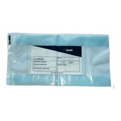 This sealable clear bags are made of polythene that comes with shades of different colors for different denominations and are labelled with the amount of cash each holds. They can be customized with client’s logo.